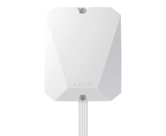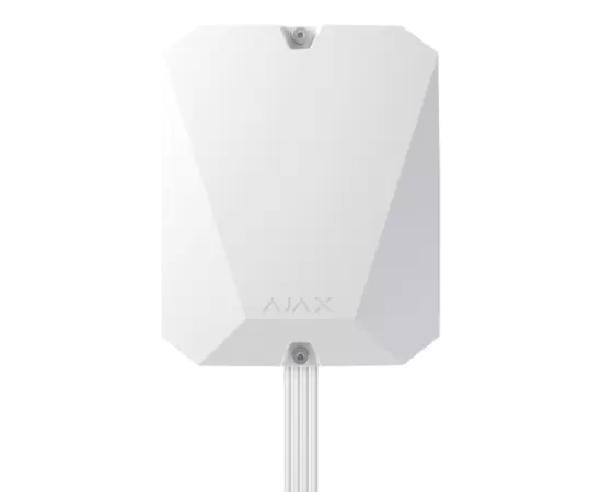 Hybrid control panel Ajax Hub Hybrid (4G) supports wired and wireless devices. GSM, Ethernet, 2 SIM cards (micro SIM 4G), communication range up to 2000 meters via Jeweler radio protocol, support for wired devices of the Fibra line, 868.0-868.6 MHz, connection of up to 100 wired/wireless devices, 25 groups, 25 cameras and video recorders. Power supply 110-240 V, backup battery Li-Ion 7 Ah.