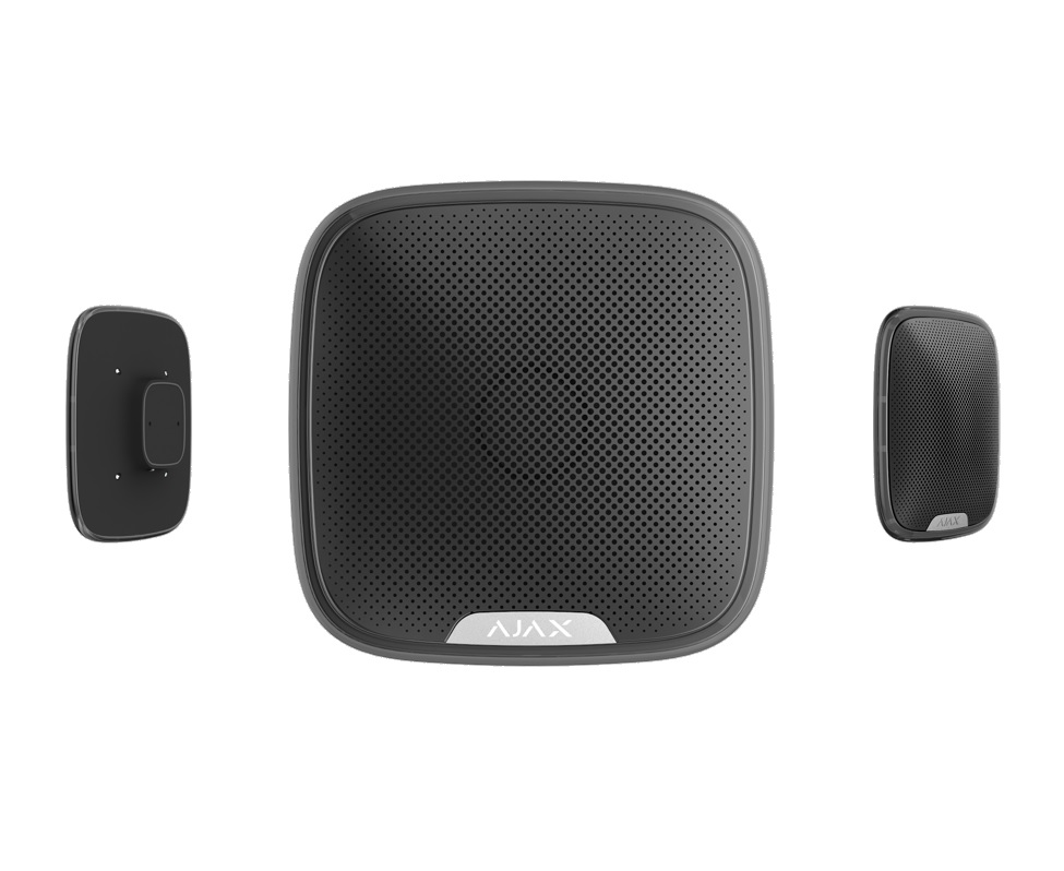 Wireless outdoor siren that notifies of danger using sound and light. The device is installed outside the room to raise an alarm for everyone to hear. The device notifies of detector activation with an audible alarm and LED. Sound level and alarm length are set in the mobile application. The device has IP54 dust and moisture protection. 12 V DC external power supply can be connected, if necessary. The built-in accelerometer will raise the alarm if an attempt is made to remove the siren. Ready to operate straight out the box: the battery is already installed, therefore there is no need to disassemble the siren. With one click, it can be connected to the hub in the mobile application. It can be mounted on the SmartBracket in just a few minutes.