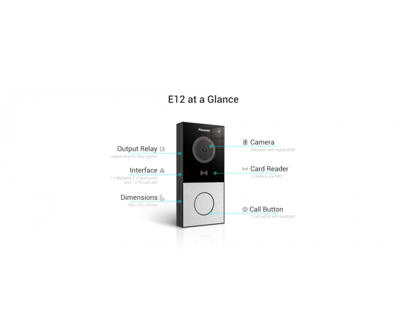 Akuvox - E12S-2 2-Wire Smart Doorbell with 1 Call Button - Camera, RFID, BLE, Surface Mount