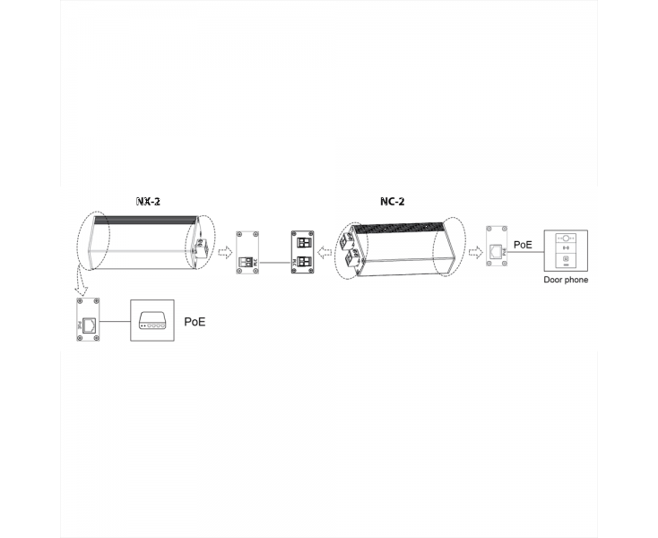 NX-2 Adapter – Connects to your existing 2-wire system, converting analog signals into digital data for IP transmission, including embedded PoE.