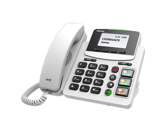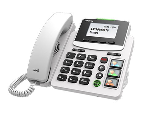 The Akuvox R15P PoE SIP phone was designed with social and health care as a focus. To support and offer greater familiarisation for the user, the R15P phone’s big button design simplifsy the dialling process, along with dedicated SOS call and 3 extra-large speed dial buttons for friends and family. These 3 keycaps are removable for a photo of the person behind each button.