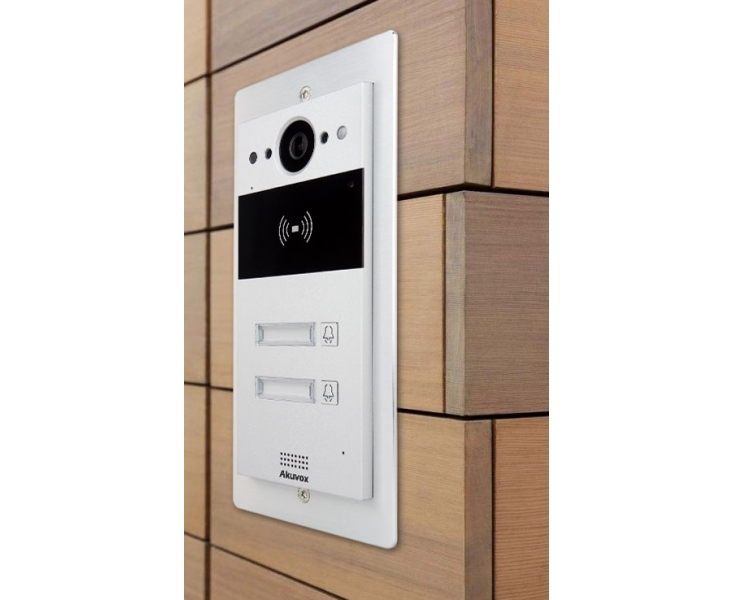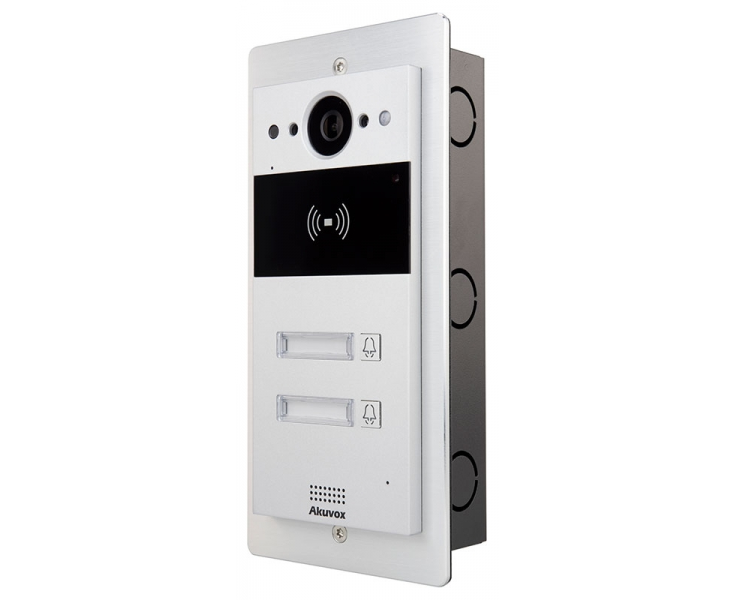 Akuvox - R20B2F Compact IP Door Intercom Unit with 2 Buttons (Video & Card reader), incl. Flush Mount Backbox