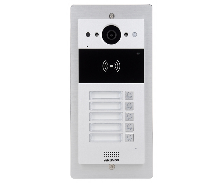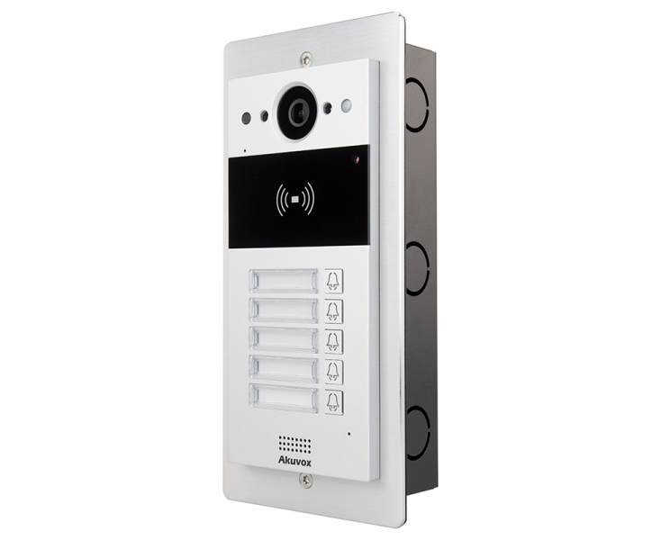 Akuvox - R20B5F Compact IP Door Intercom Unit with 5 Buttons (Video & Card reader), incl. Flush Mount Backbox