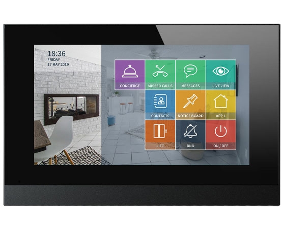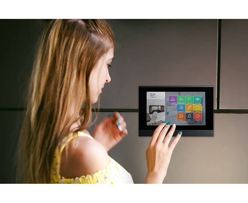 This IP-connected door answering panel provides a stylish, budget-friendly touchscreen experience in an unobtrusive, space-saving design featuring 7" HD capacitive touchscreen display.