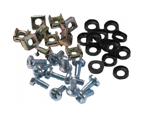 Pack of 50 silver cagenuts including washers & screws (6mm) for fixing network racks and cabinet accessories