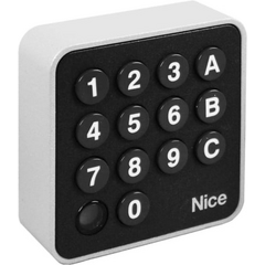 This is a wireless digital keypad with three channels which operates on the 433.92 MHZ frequency. It has a protective vandal proof aluminium casing and the keypad buttons are highlighted.