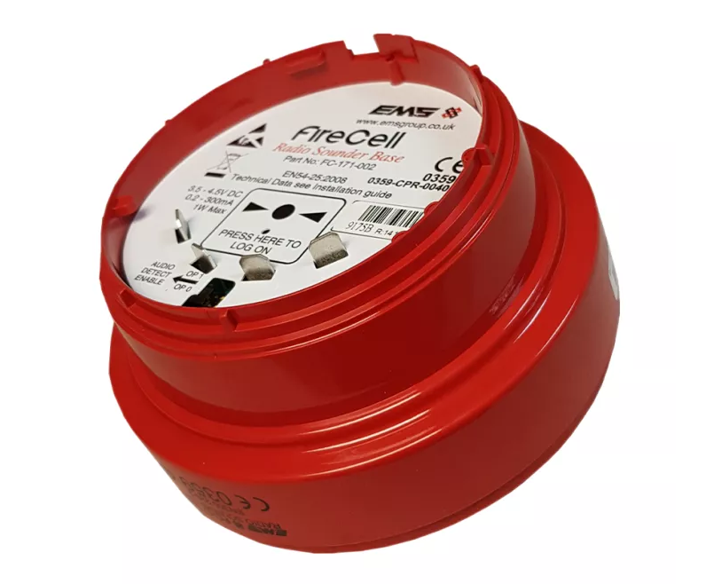 The EMS FireCell FC-171-002 is a red Wireless Sounder Base designed for compatibility with the FireCell range of wall mounted sounder heads and sounder / beacon heads.
