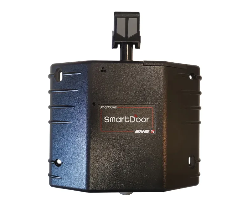 The EMS SmartDoor (black) is an intelligent wireless door controller, that combines both industry proven mechanics and the renowned fully EN-certified robustness of SmartCell wireless technology.