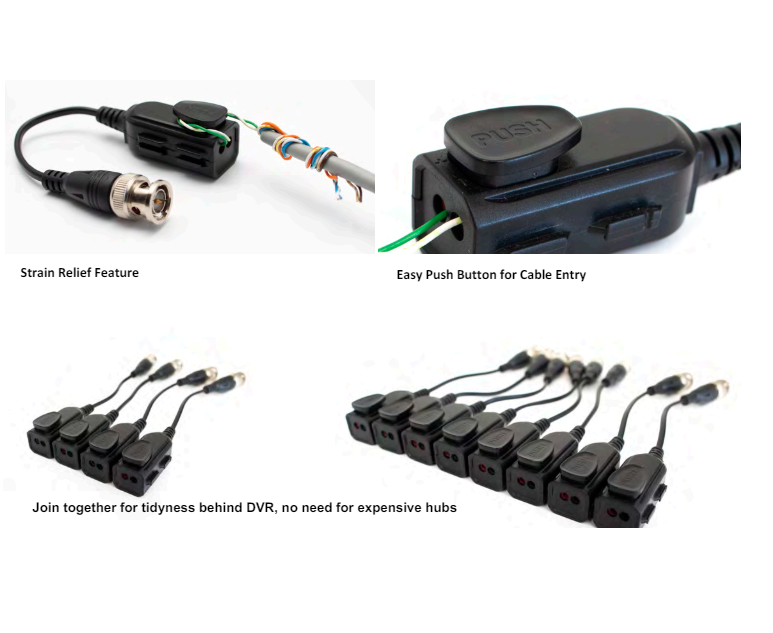 A passive video balun that allows the transmission of real-time CCTV video signal via UTP cable - even compatible with POC cameras. It has a mini coax pigtail lead which allows quick mounting onto fixed cameras. Compatible with all HD-TVI, CVI & AHD cameras.