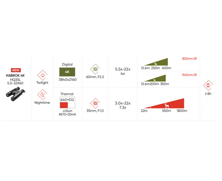 With an IP67 waterproof rating, 8+ hours of runtime from replaceable 18650 batteries, onboard 64GB storage, and built-in GPS, compass, and hotspot functionality, the HQ35L is engineered for endurance, clarity, and mission-critical performance. Whether spotting through dense foliage or capturing low-light wildlife footage, the HQ35L delivers reliability where traditional optics fall short. Experience the future of binocular technology with the HABROK 4K HQ35L.