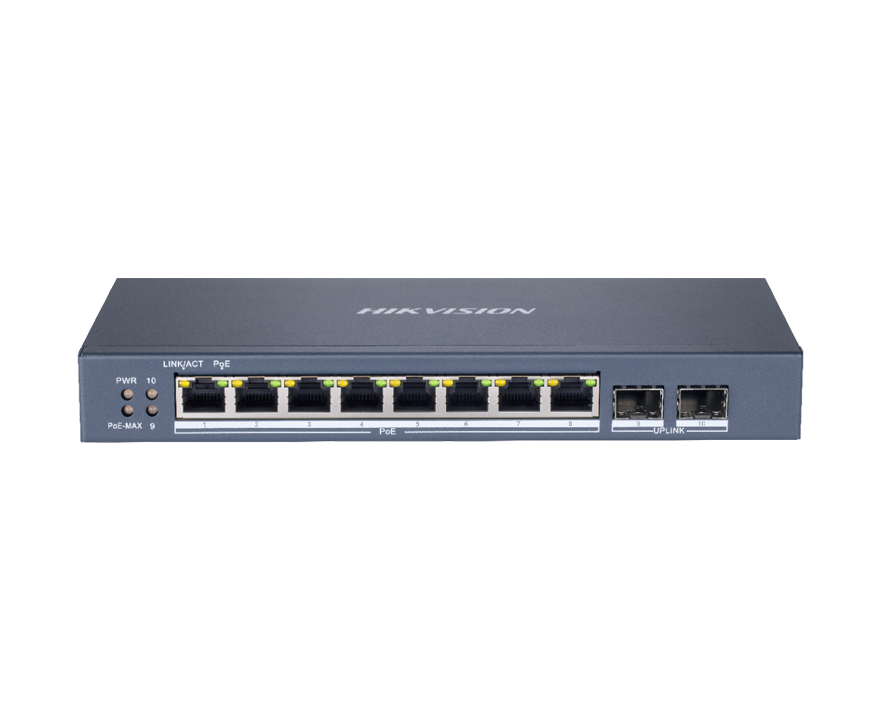 - 8 × gigabit PoE ports, and 2 × gigabit fiber optical ports.