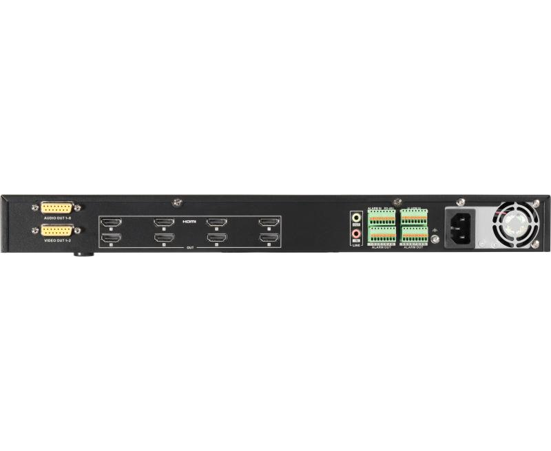 - Support auto fault detection and device exception alarm, including network disconnection, IP conflict, illegal access, temperature overshoot, fan status exception, decoding signal source exception and device exception.