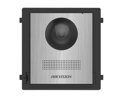 The Hikvision DS-KD8003-IME1(B)-NS is a 2MP fisheye video intercom module door station with wide dynamic range (WDR), IR supplement light and night visibility.