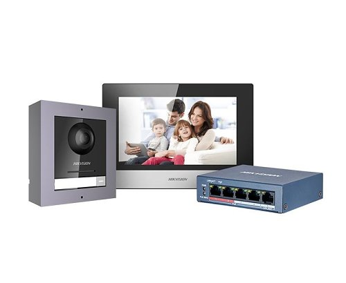 Hikvision DS-KIS602(B) IP Video Intercom Kit with 7" Touchscreen Monitor & 4 Port Switch
