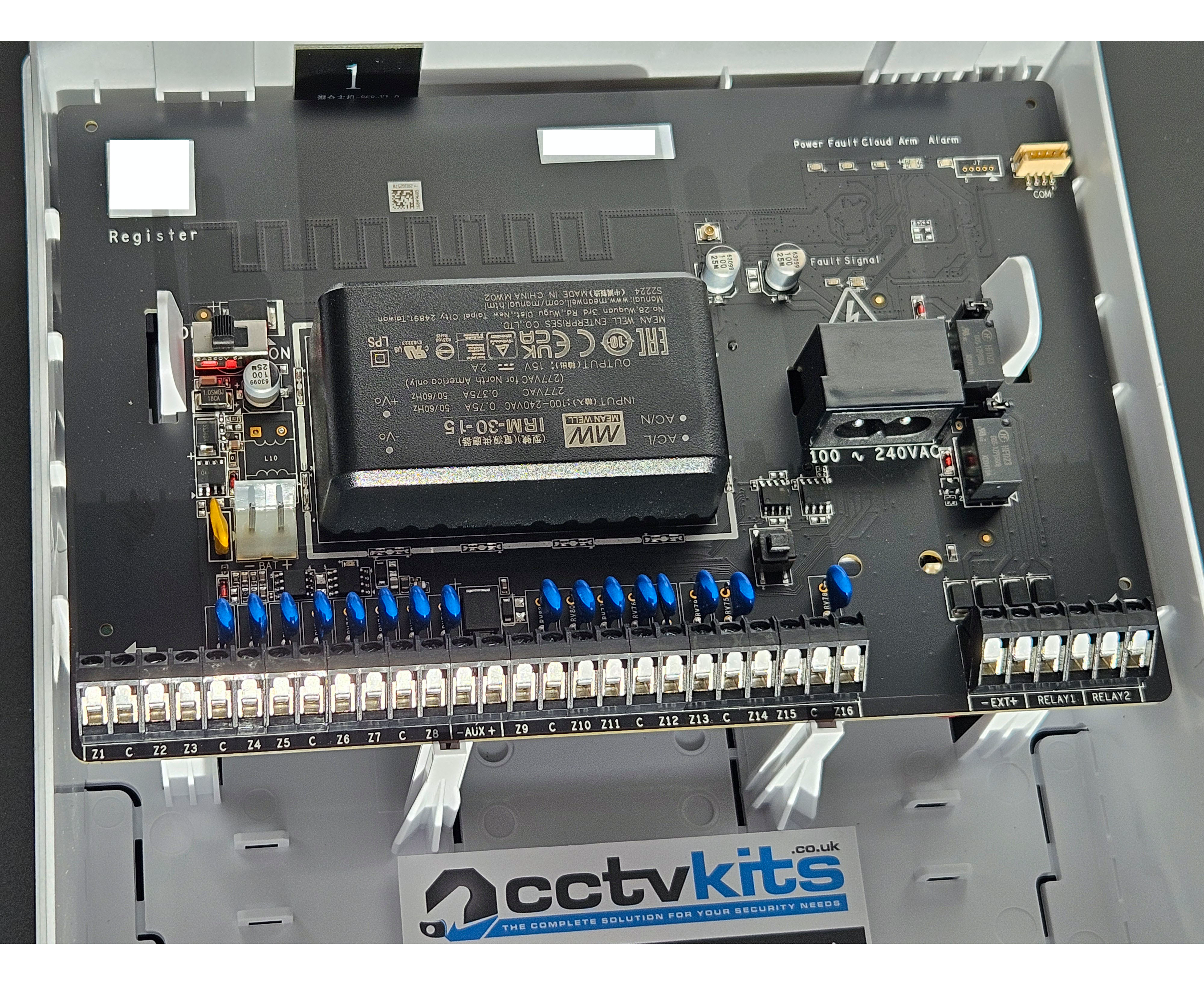 - Connects up to 96 zones/outputs (Including 48 PIRCAMs & onboard Wired Zones/Outputs), 48 wireless keyfobs, 4 repeaters, 6 sounders(3 internal+3 External), 8 tag readers & keypads.