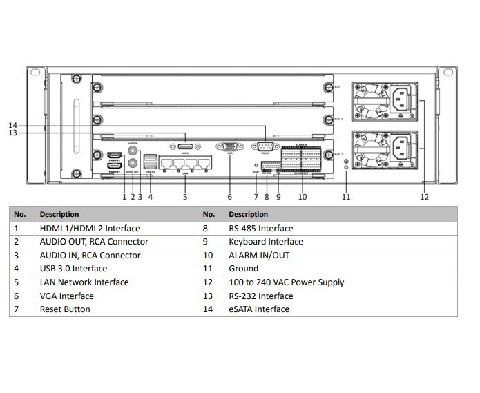Supports both facial recognition and false alarm reduction based on deep learning algorithm. Up to 24 channel facial recognition for face picture. Up to 64 libraries, up to 500,000 face pictures. Up to 48 channel video analysis for human and vehicle recognition to reduce false alarms.Supports multiple VCA (Video Content Analytics) events. Up to 64 channel IP cameras can be connected Supports decoding H.265+/H.265/H.264+/H.264/MPEG4 video formats.