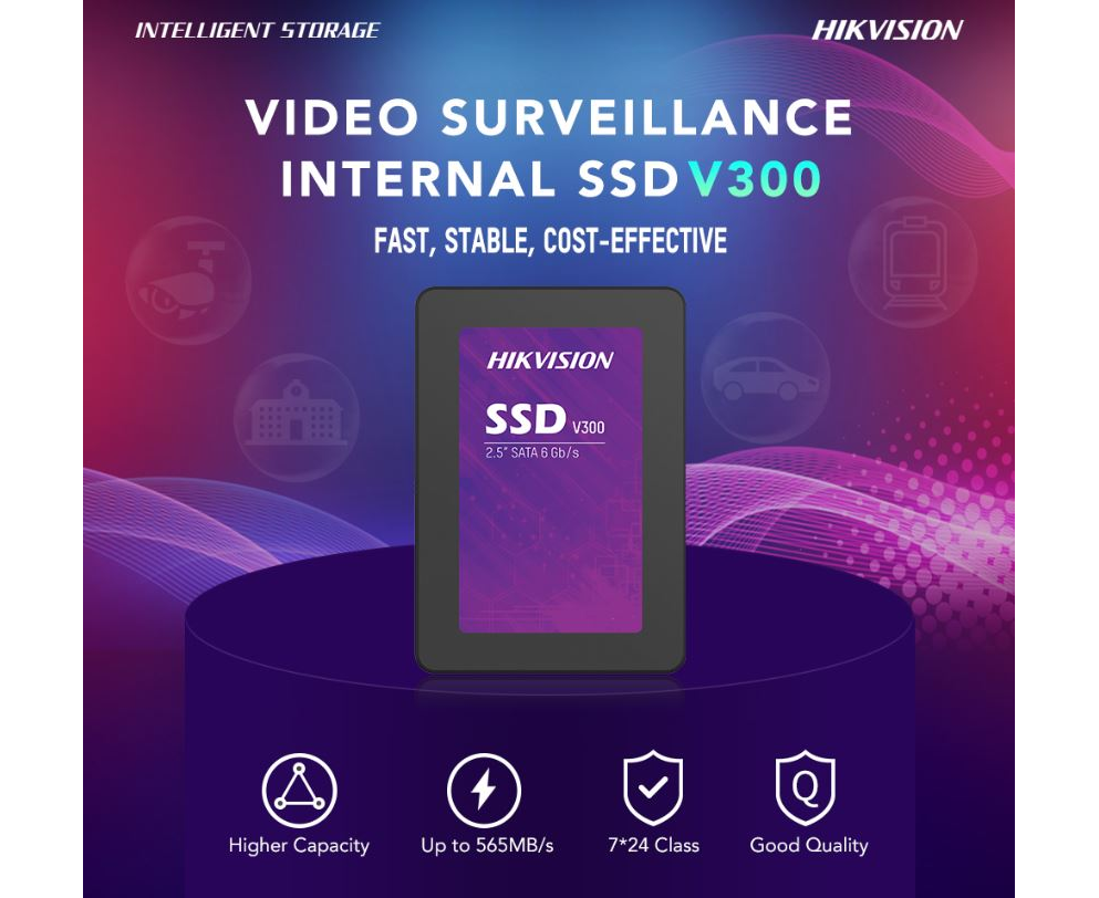 The Hikvision V300 series solid state drive is developed from years of experience and expertise on storage technology and flash memory management. This product is specialised for optimisation of Surveillance Class Systems and offers stable and fast data service by accelerating startup and performance.