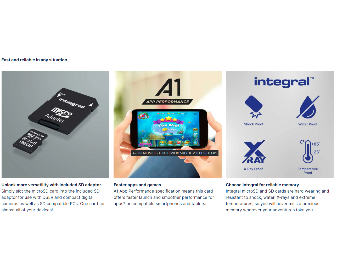 INTEGRAL 128GB PREMIUM HIGH SPEED MICRO SD CARD MICROSDXC V30 UHS-I U3
