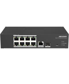 The DS-3E0310HP-E switches are layer 2 100 Mbps long-range PoE switches, providing 1 × 10/100 Mbps HiPoE port, 7 × 10/100 Mbps PoE ports, and 2 × 10/100/1000 Mbps RJ45 ports. Hi-POE capable (single port for larger PTZs)