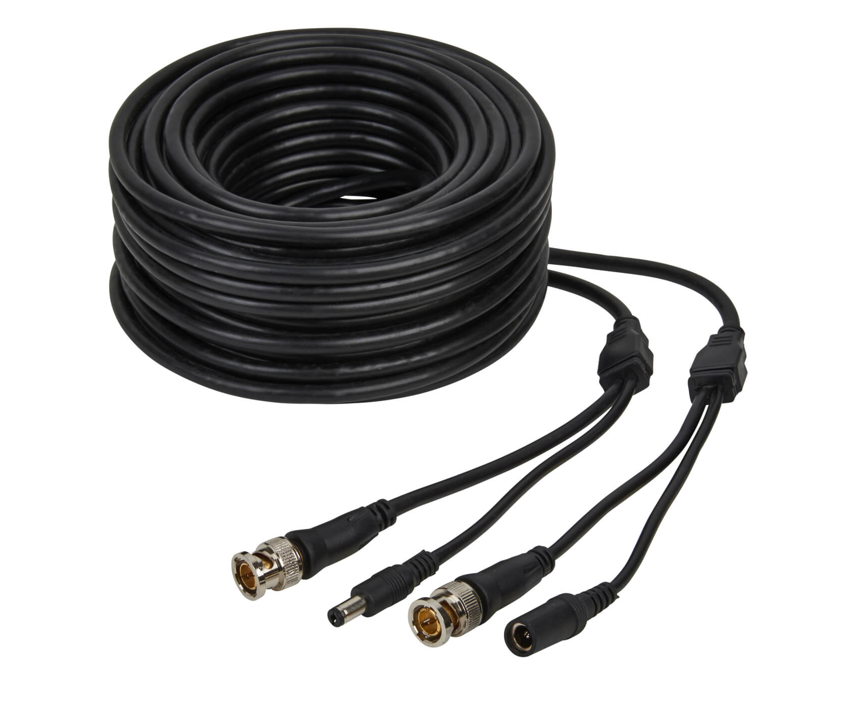 Plug n Play, ready made twin coaxial video and power cable for CCTV cameras with BNC and DC connectors. 10/20m