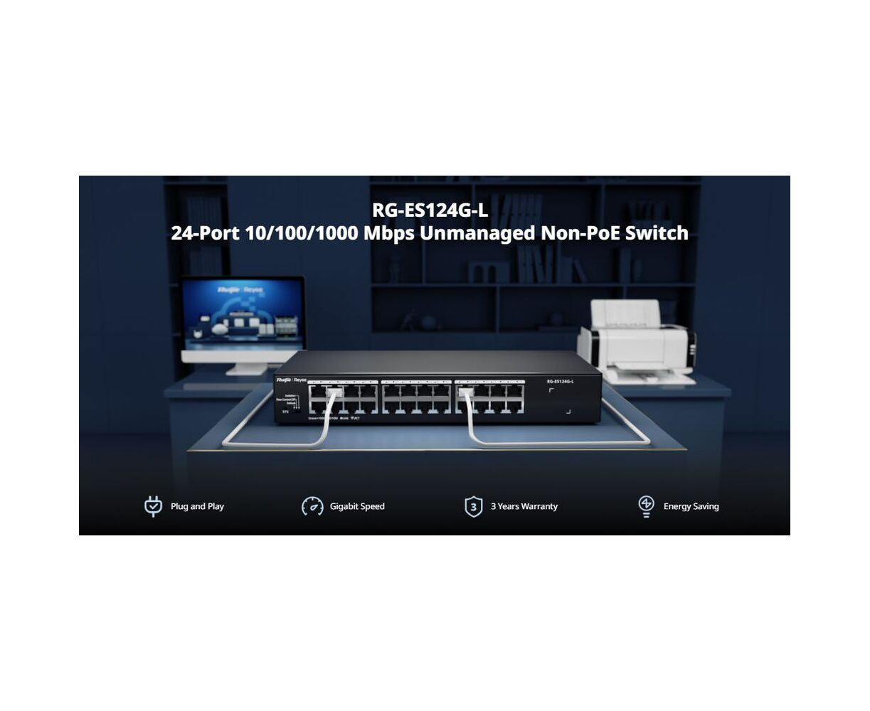 RG-ES124G-L, 24-Port 10/100/1000 Mbps Unmanaged Non-PoE Switch