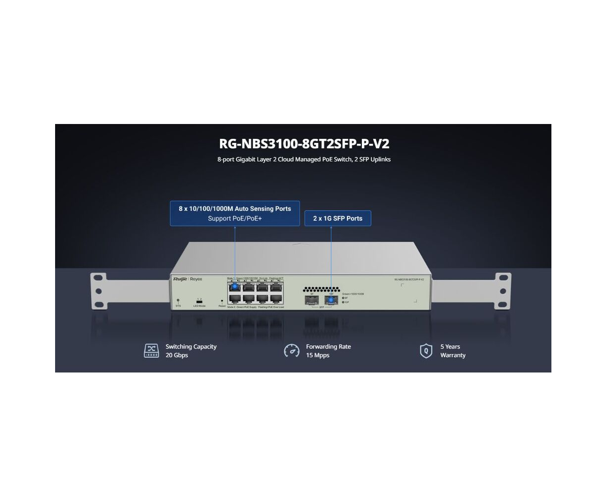 RG-NBS3100-8GT2SFP-P-V2, 10-Port Gigabit Layer 2 Cloud Managed PoE Switch