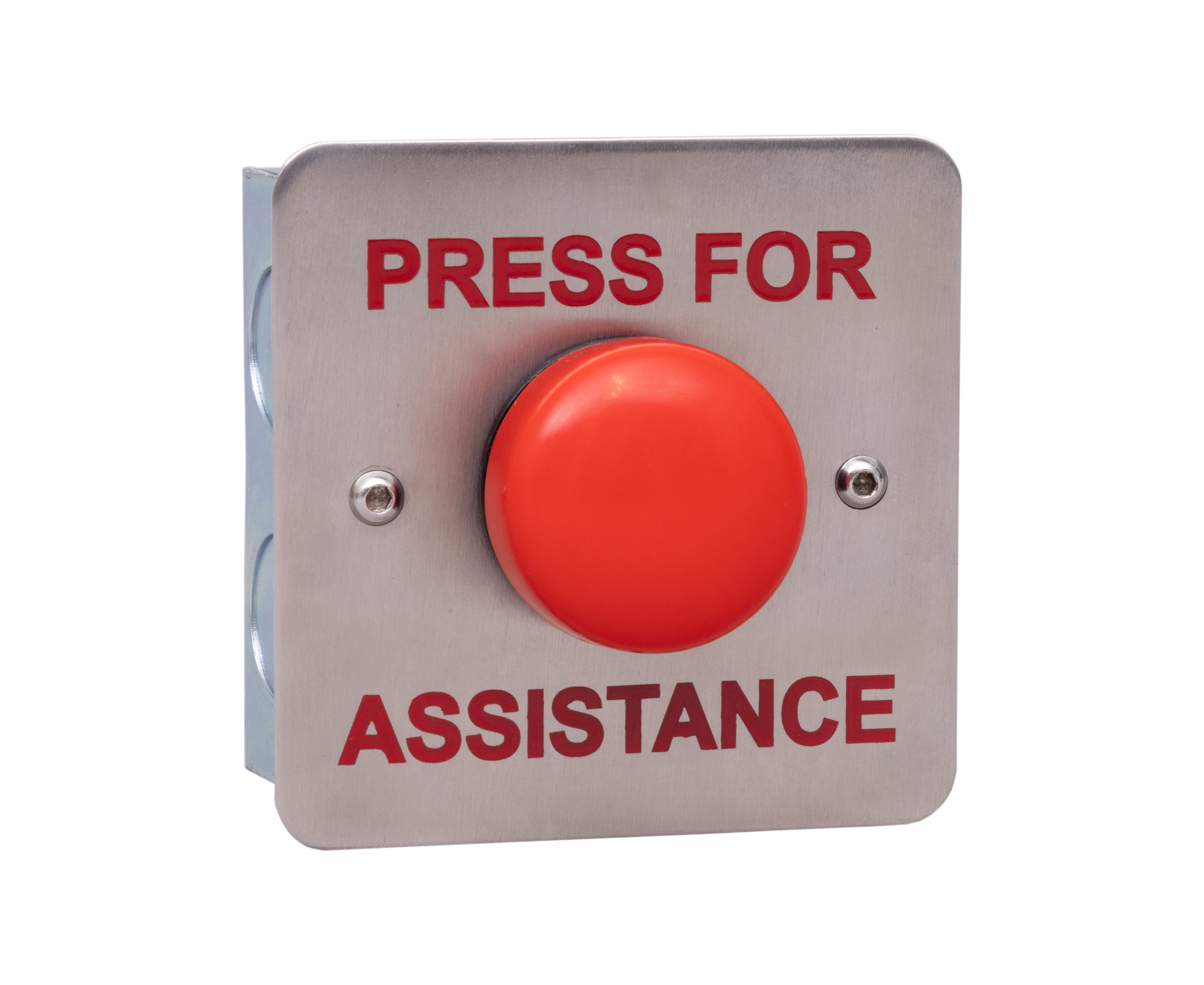 • Contacts : Double pole N/O – N/C. • Output : 4 AMP contact @ 30 V AC/DC. • Red text: ‘PRESS FOR ASSISTANCE’ • Security screws (Allen key type). • Internal use only.