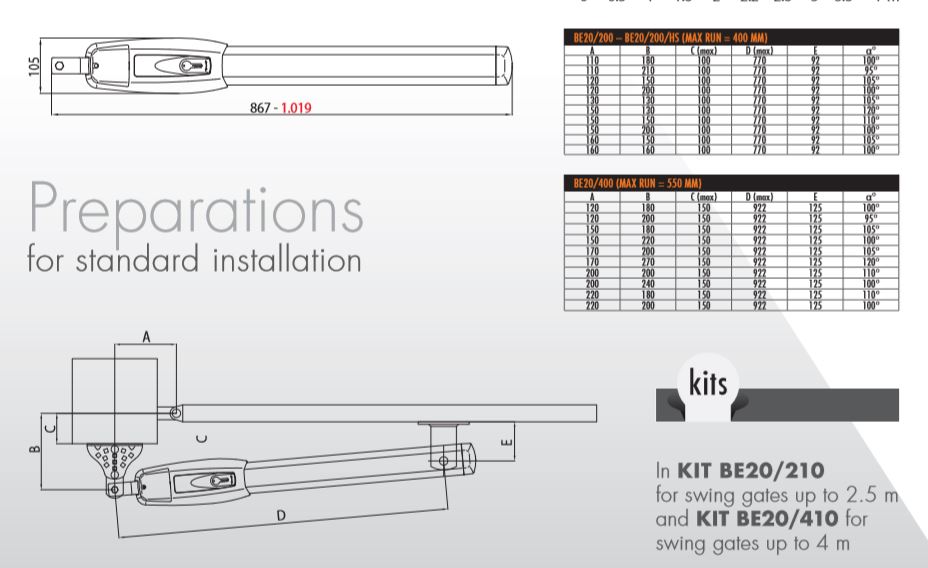 The 24v electromechanical brushless motor offers super intensive use with industry leading safety features such as obstacle detection fitted as standard. Thanks to its brushless technology the BE20/210 can automate gates whilst boasting low voltage usage, onboard native encoder, irreversible motors with mechanical stops for opening and closing. Meaning no physical stops are required.