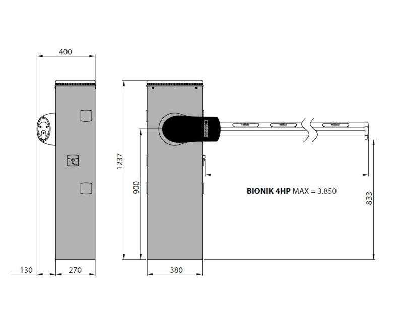 The Brushless Bionik HIGH POWER Version of the standard 4m high power 36V barrier is a super intensive barrier that has a boom of up to 4 metres and a built-in digital control panel with the onboard encoder. Perfect for a high intensive use carpark or controlled area.