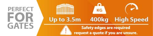 The HIGH SPEED BM30/326 has the capability to open a 400kg gate in 24m/min or 0.44m/s!