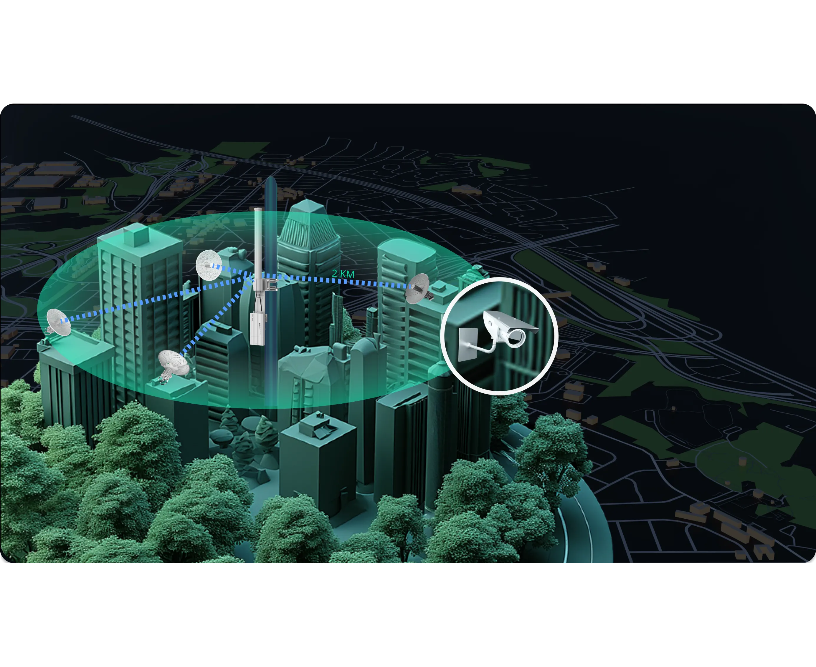 The RG-AirMetro460F wireless bridge is designed for transmitting surveillance video data or wireless data remotely in scenarios such as tower cranes, factory buildings, campuses, construction sites, and forest fire prevention. It utilizes the IEEE 802.11ac standard for efficient and reliable communication.