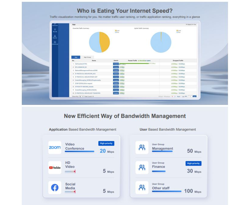 Switches can isolate data traffic based on different groups such as: users, guests, backups, management and servers. This not only gives managers the best way to control data traffic, but also provides robust security for the entire network.