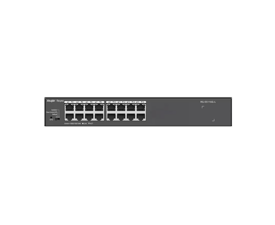 The Ruijie RG-ES116G-L is a reliable unmanaged network switch designed to provide stable wired connectivity for offices, small businesses, or home networks. It features 16 Gigabit Ethernet ports with auto-sensing 10/100/1000 Mbps support, allowing high-speed connections for multiple devices such as PCs, NAS, network storage, access points, and CCTV recorders.