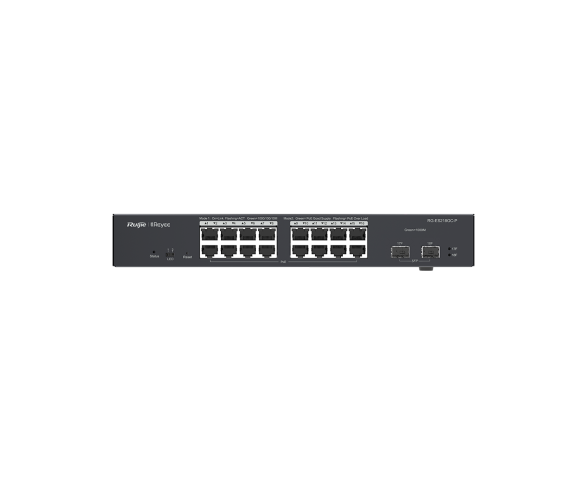The Ruijie Reyee RG-ES218GC-P is an 18 port cloud managed PoE switch with 16 downlink and 2 SFP uplink ports.