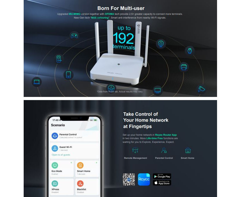 - Exclusive Reyee Mesh provides full space coverage Wi-Fi solution