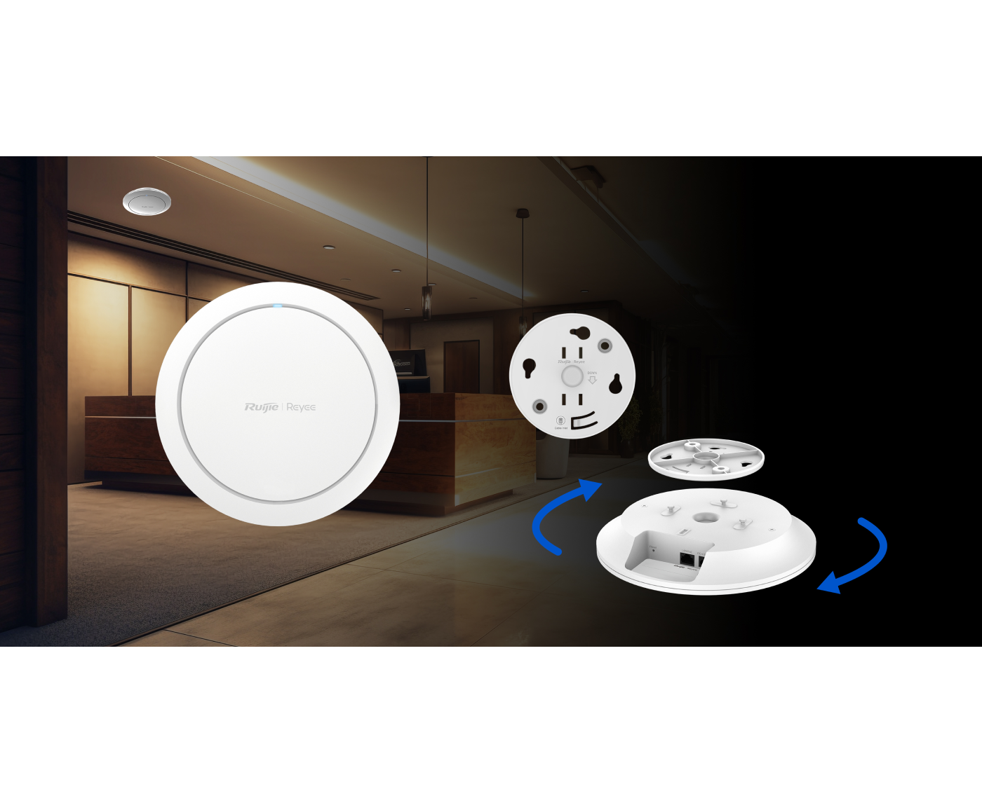- Easy to install: Fix the plate to the ceiling, rotate (and allow it to self-configure from any Ruijie router - auto mesh)
