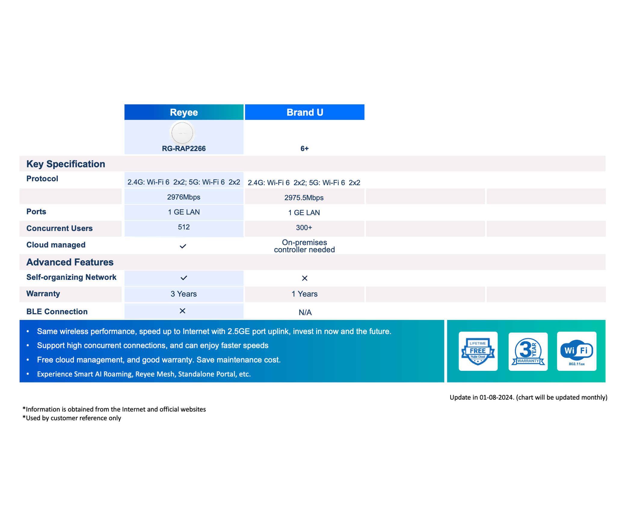 - Capable of Reyee Mesh and 802.11K/V