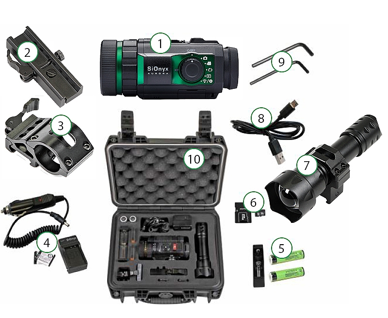 The Aurora Explorer Edition combines the SiOnyx Aurora camera with a number of must have accessories all packaged in a rugged waterprood hard case. Included accessories: