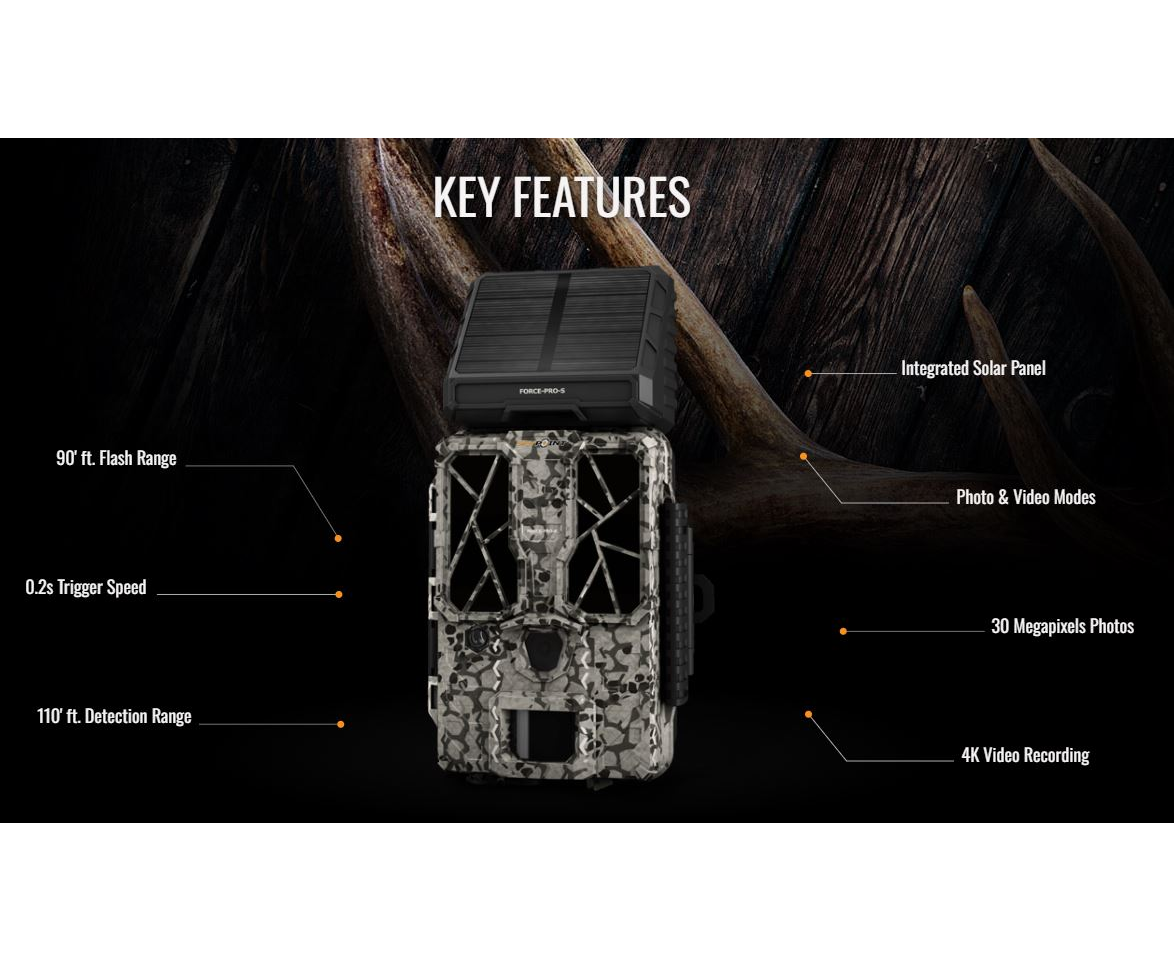 The FORCE-PRO-S from SPYPOINT takes a monster of a camera and makes it even better by adding a solar panel used to charge an internal lithium battery to keep the camera powered for weeks and months on end. Capture images at an incredible 30 megapixels and take 4K videos so you can feel like you were in the woods when it happened. The added benefit of extended battery life means fewer trips to service batteries and the cost savings of not having to replace them.