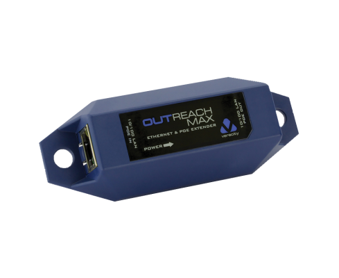 The Veracity Outreach Max VOR-ORM is a simple device which can extend Ethernet cable installations beyond the 100m limitation. It is used to join two Ethernet cables, each of up to 100m in length, and acts as a repeater to forward both LAN activity and power to a PoE-enabled device at a 200m distance.